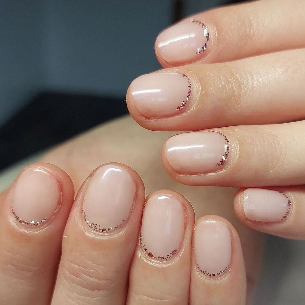 Un peu de paillettes suffit. Cette unique ligne de paillettes placée à la base de l’ongle crée un design amusant et frais.