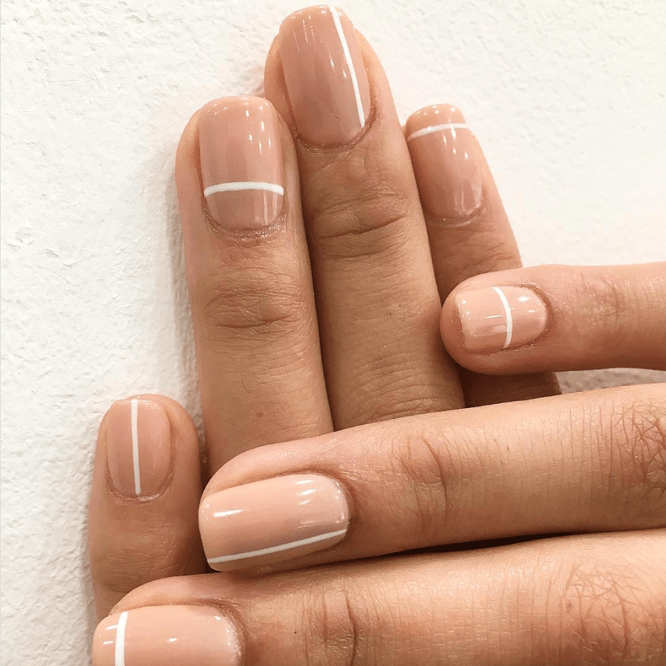 Sobre ne veut pas dire ennuyeux. En fait, ces lignes blanches horizontales et verticales ajoutent juste ce qu’il faut d’intérêt à une manucure assez simple.