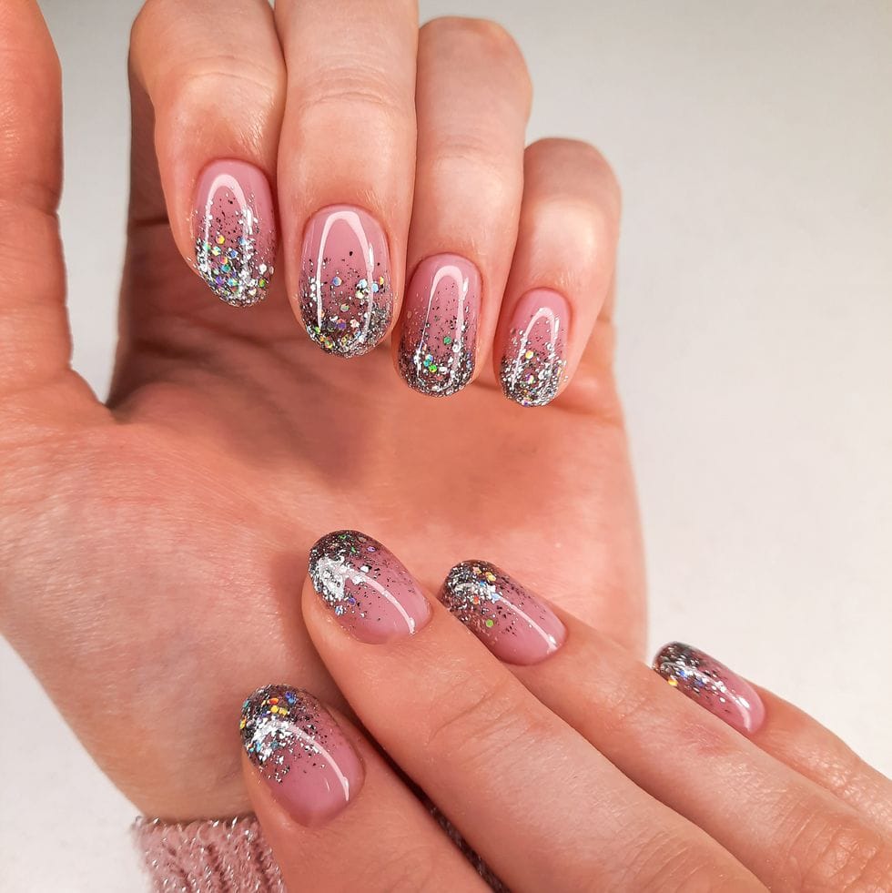 Commencez avec une perle de vernis pailleté et tamponnez-la lentement au centre de votre ongle pour créer un effet ombré. Utilisez cette technique sur un ongle nu ou une base nude.Publicité – Continuez la lecture ci-dessous