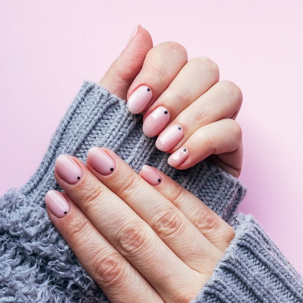 Utilisez un outil de pointage pour créer un seul point à la base de chaque ongle. Considérez-le comme un moyen simple d’ajouter une décoration subtile à votre manucure rose pâle préférée.
