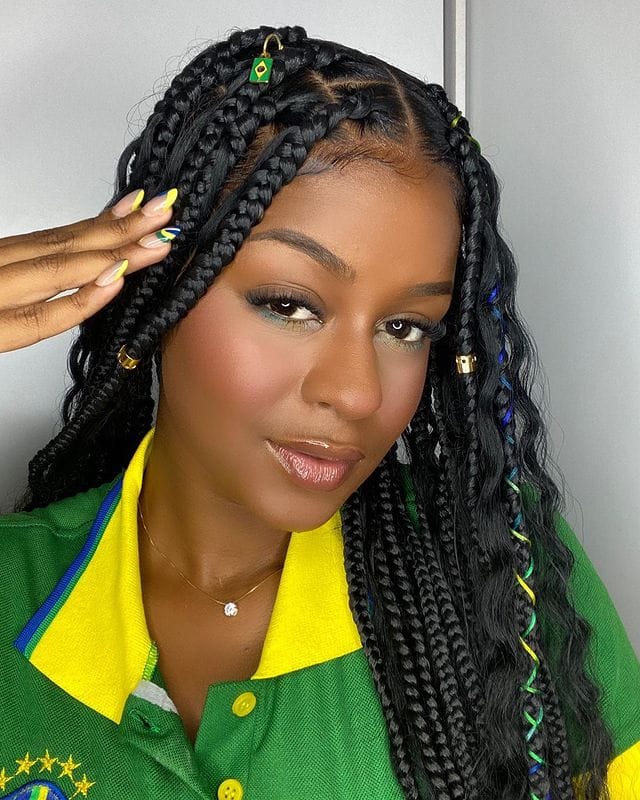 Tout est dans le détail et ces tresses de boîte sont bangin ‘. Séparez simplement vos tresses en triangles pour un look soigné et propre qui se démarque.