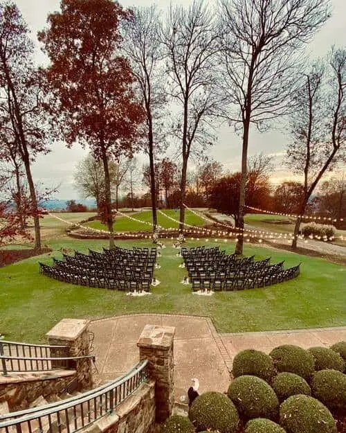 Imaginez une allée de mariage intemporelle en noir et blanc, où convergent élégance et simplicité. La pièce de résistance est l’ajout de lumières suspendues suspendues, qui ajoutent une touche de fantaisie et de romance au décor. Le lieu discret mais sophistiqué offre une toile de fond époustouflante à ce chef-d’œuvre monochrome, permettant à la beauté de l’histoire d’amour du couple de prendre le devant de la scène.