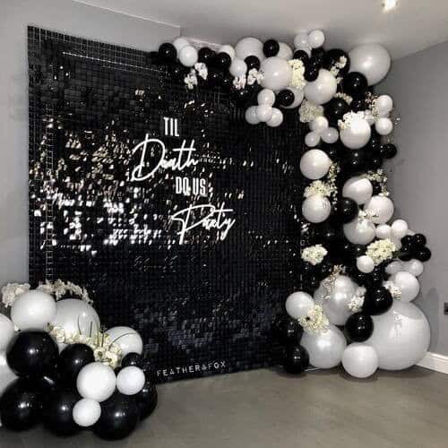 Faites passer votre fête au niveau supérieur avec cette idée de toile de fond épique qui est garantie de figurer sur tous vos flux de médias sociaux guest’ ! La clé de son succès réside dans l’utilisation astucieuse de matériaux réfléchissants, qui créent un effet de patinoire 90’s fascinant lorsqu’ils sont photographiés avec flash. Mais ce qui distingue véritablement cette toile de fond, c’est l’ajout d’une enseigne au néon –, une touche parfaite qui ajoute une couche supplémentaire d’excitation et de fantaisie au design global.