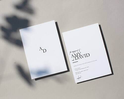 L’attrait d’une palette de couleurs noir et blanc peut être élevé sans effort en incorporant des invitations correspondantes. Ces designs élégants et sophistiqués complètent non seulement l’esthétique monochromatique mais ajoutent également un air d’élégance à votre occasion spéciale. Pour une touche supplémentaire, pensez à imprimer du texte blanc sur des cartes noires pour un contraste visuel saisissant qui laissera une impression durable.