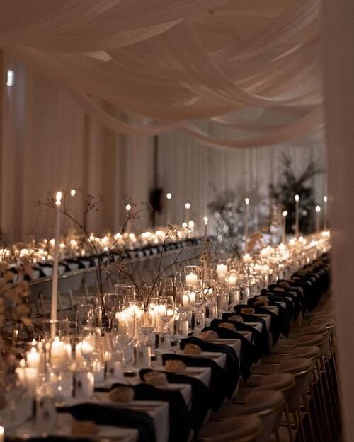 Instead of playing it safe with traditional candles, why not elevate your table setting by opting for longer candles that add visual interest and depth? Just remember to exercise caution when placing them near floral arrangements or any flammable materials. The benefits are twofold – the candles create a striking height in the table setting, while the elegant chairs provide both style and comfort.
