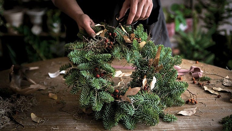 Pensez à accrocher une couronne au-dessus de votre manteau de cheminée ou de votre table de salle à manger, ou organisez une fête de Noël avec fabrication de couronnes .