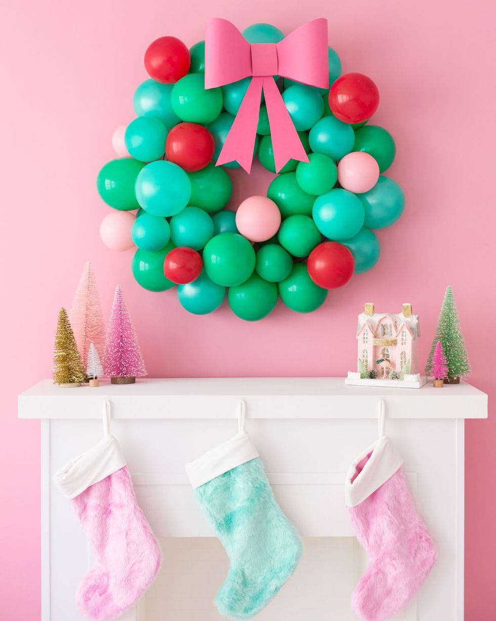 Rendez votre décoration de Noël vraiment éclatante avec cette couronne de ballons ludique. Complétez le tout avec un nœud en papier rose qui fera sourire tous vos invités en vacances.