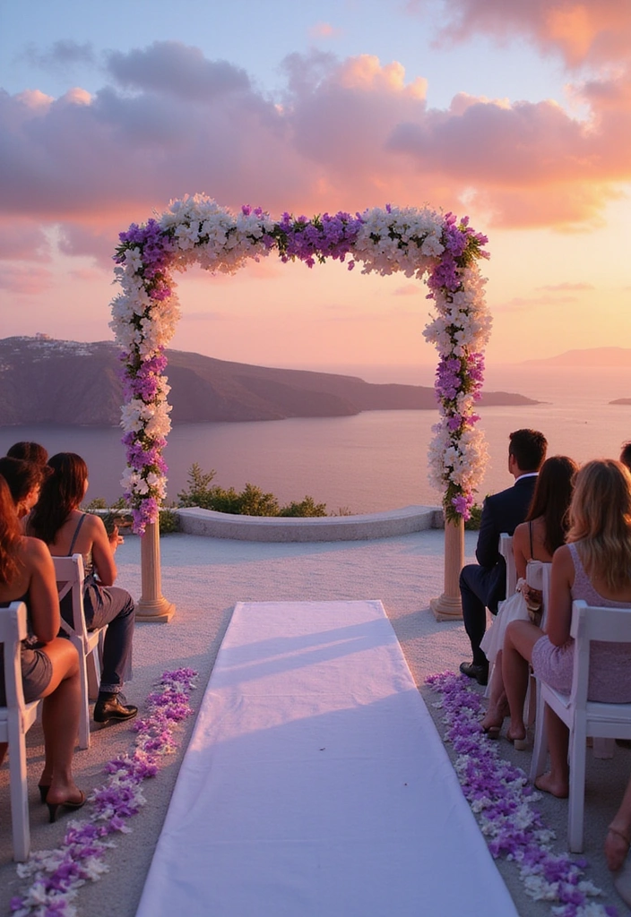 Pour une touche d’élégance supplémentaire, veillez à ce que votre événement soit parfaitement coordonné avec une décoration de mariage en plein air qui s’harmonise avec la beauté naturelle de Santorin. N’oubliez pas de réserver un service de transport de luxe pour vous déplacer avec vos invités d’un lieu à l’autre avec style. Santorin offre un mélange exquis de beauté et de culture, ce qui en fait le cadre idéal pour un mariage à destination véritablement enchanteur.