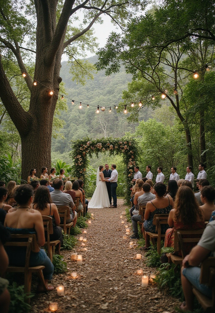 Pour sublimer le thème de la forêt, pensez à intégrer des éléments rustiques comme des arches en bois et des tables bio ornées d’orchidées sauvages. Vous pouvez également envisager des cadeaux de mariage écologiques , en harmonie avec la nature, offrant ainsi à vos invités un souvenir durable. En collaborant avec un traiteur local, vous pourrez créer un menu composé d’ingrédients frais et locaux qui s’harmoniseront parfaitement avec le cadre époustouflant. Après l’échange des vœux, savourez une réception en plein air sous les étoiles, bercé par les sons apaisants de la nature, créant des souvenirs précieux qui dureront toute une vie.