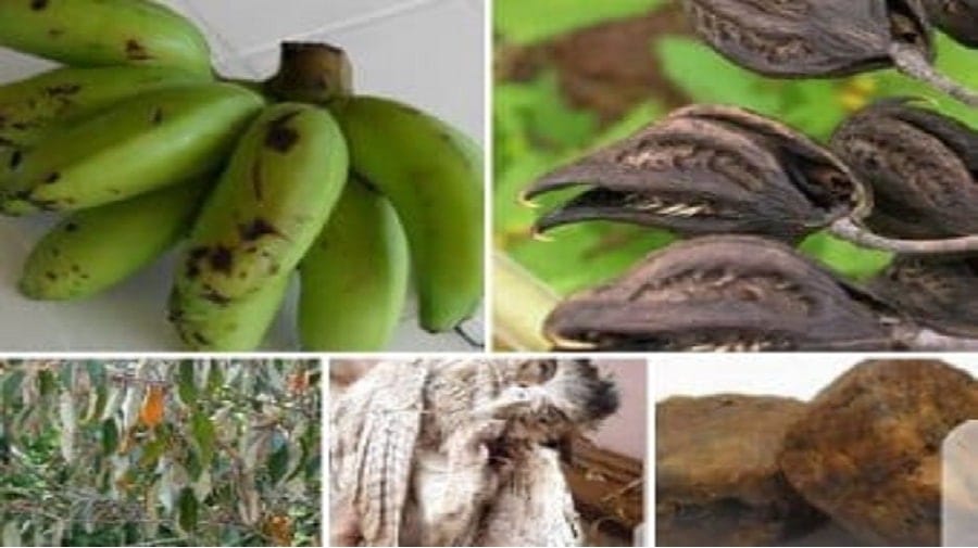 • Étape 1: couper en morceaux 9 bananes non mûres et sécher, piler et obtenir une poudre fine.