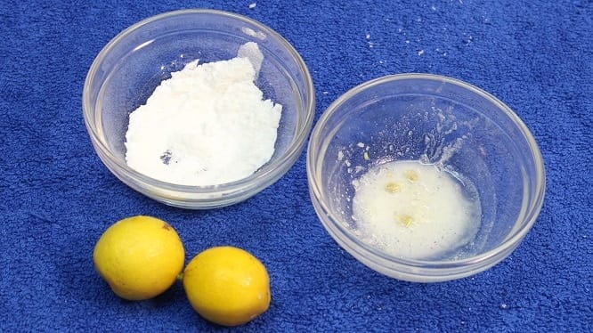 Dans la première étape, vous devez prendre un bol et ajouter une cuillère à café de bicarbonate de soude dans ce bol.