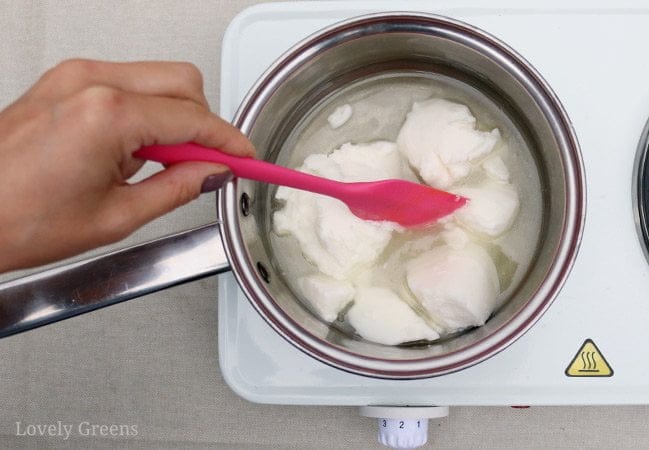 Ce que vous devez attendre de cette recette, c’est que le savon peut être doux et collant après le démoulage. Cette eau supplémentaire a besoin de plus de temps pour s’évaporer. Je recommande de laisser le savon dans le moule pendant environ une semaine avant de le retirer et de le couper.
